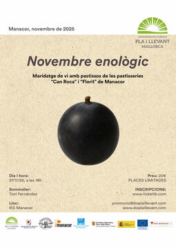 Durant el mes de novembre tens una cita amb la DOP Pla i Llevant a Manacor. En aquesta tercera activitat et proposam un maridatge molt dolç, golós i especial. Vins de la DOP Pla i Llevant amb pastissos de les pastisseries "Ca'n Roca" i "Florit" de Manacor. Un tast dirigit pel sommelier Toni Fernández.